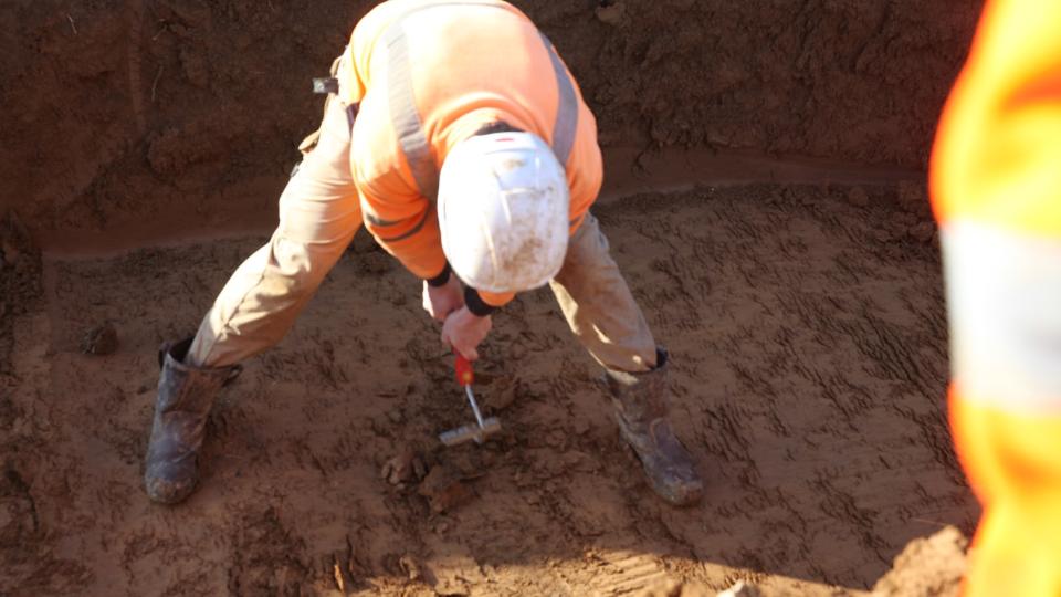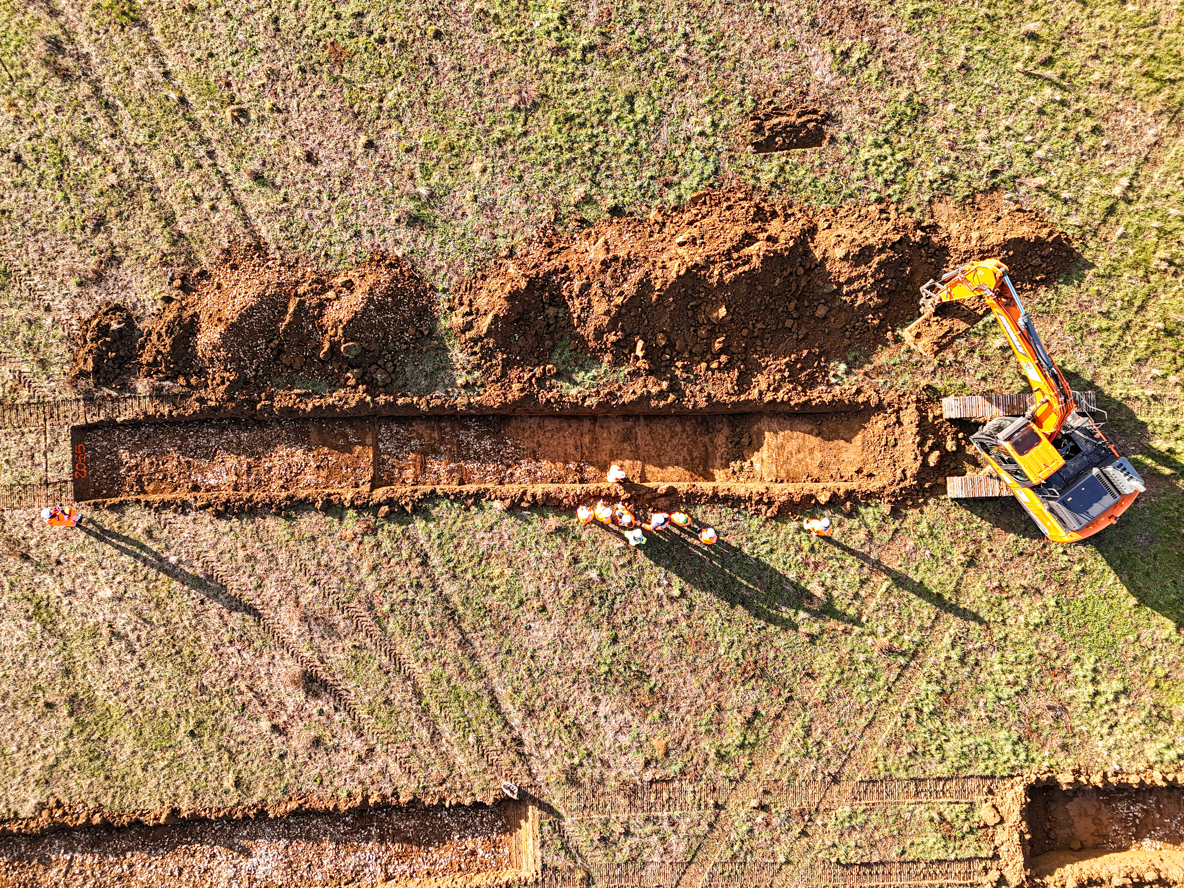 Sur le terrain, les archéologues creusent des tranchées à la pelle mécanique, larges de 2 mètres environ et longues de 10 à 12 mètres, réparties en quinconce afin d’obtenir une lecture représentative de l’emprise. Environ 10 % des surfaces sont ainsi décapées, jusqu’à atteindre la roche naturelle, en dessous de laquelle aucun vestige archéologique n’est attendu. La profondeur des sondages varie selon la nature des sols et les contextes géologiques.